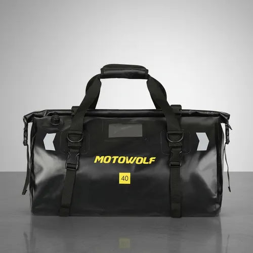 MOTOWOLF | Motorcycle Tail Bag - 40L Waterproof | Duffel Bag for Touring Adventure, Camping, Cycling - BLACK