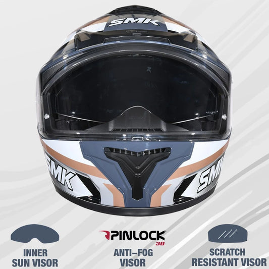 SMK Typhoon Freeride ISI ECE & DOT Certified Full Face Dual Visor Helmet for Men and Women with Pinlock Fitted Clear Visor and Inner Sun Visor ( GL627