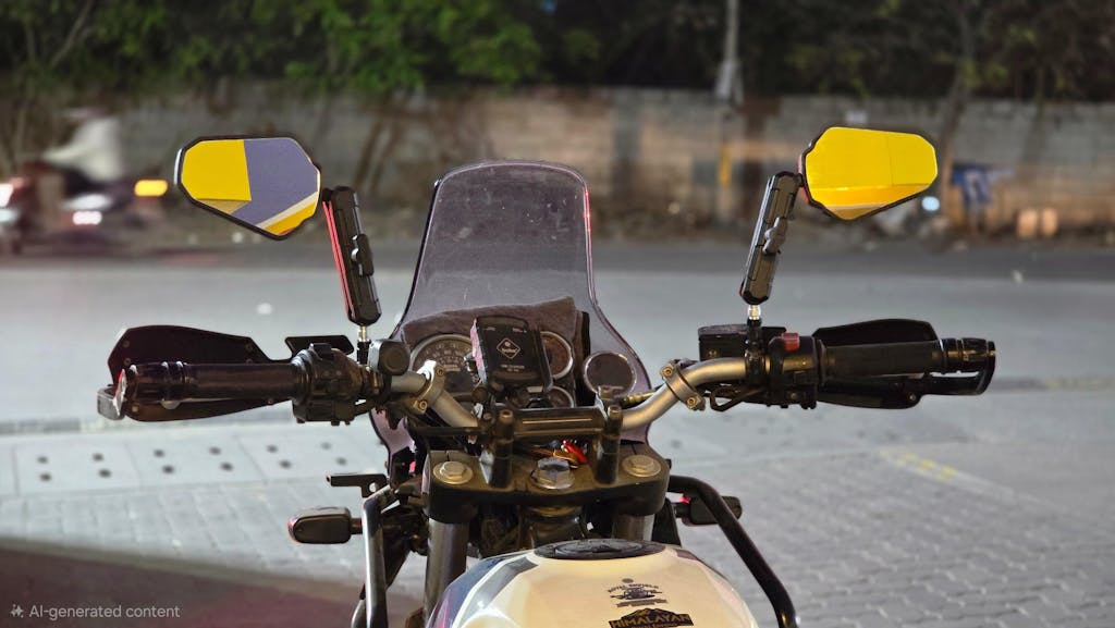Double take Adventure Mirrors are indestructible mirrors that fold out of the way along the handlebar because they are intelligently designed. The Size is such that they offer a greater angle of vision behind.