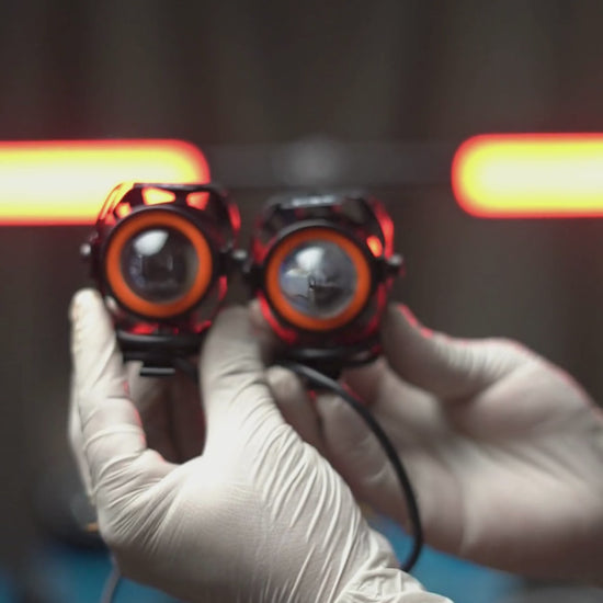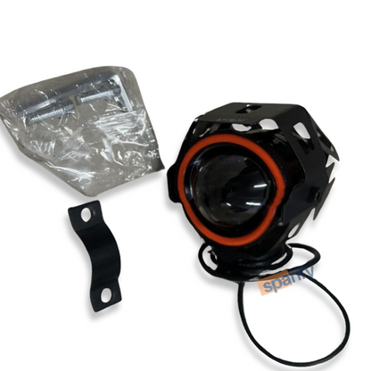 LIU HJG U7 Mini CREE LED Fog Light Work Lamp with Hi/Low, Flashing Beam and Red Angel Eye Ring for Cars and Motorcycles Projector Lens/12V-80V