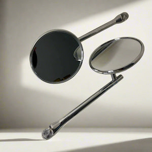 With a wide-angle convex design, the mirrors expand your rear view, reducing blind spots and ensuring safer rides across highways, mountain trails, and city streets alike. The aerodynamic silhouette complements the look of your Royal Enfield or any touring motorcycle, while the extended stem design offers perfect visibility without compromising your bike’s stance.