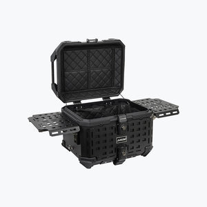 This45L aluminum alloy armored trunk is waterproof , versatile , and multifunctional, serving as both a storage solution and a portabletable . Designed for all generic motorcycle models ,it ensures durability and practicality with its sleek black design.