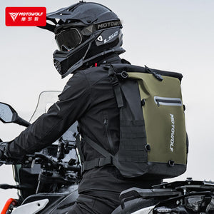 MOTOWOLF MB3 ADV EDITION | 30 litres | Portable nets | Expandable | Waterproof Riding Backpack with Net Bag Hydration Drinking Straw Water Storage Bag - Olive Green