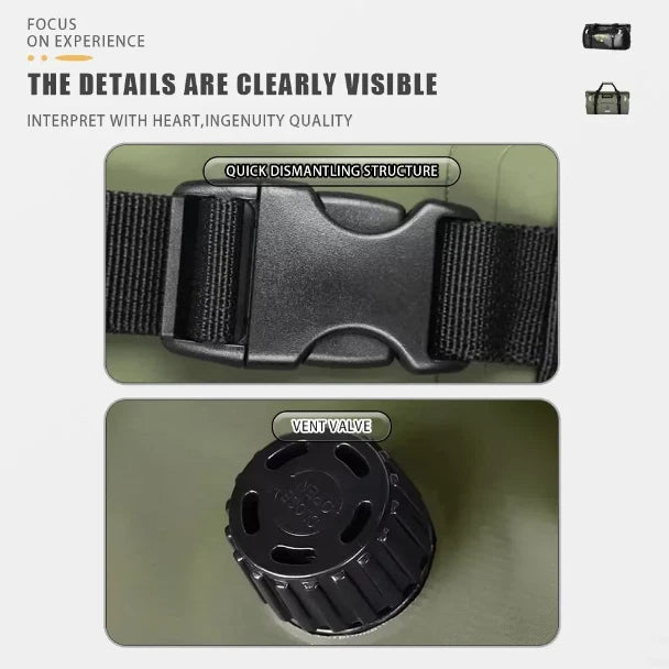 + PVC is a familiar material often used for waterproof bags because of its good water resistance and super light properties. You can use it in the rain or on long trips comfortably without fear of getting the items inside wet, with its super light weight, reducing the weight on your shoulders during long-term use.